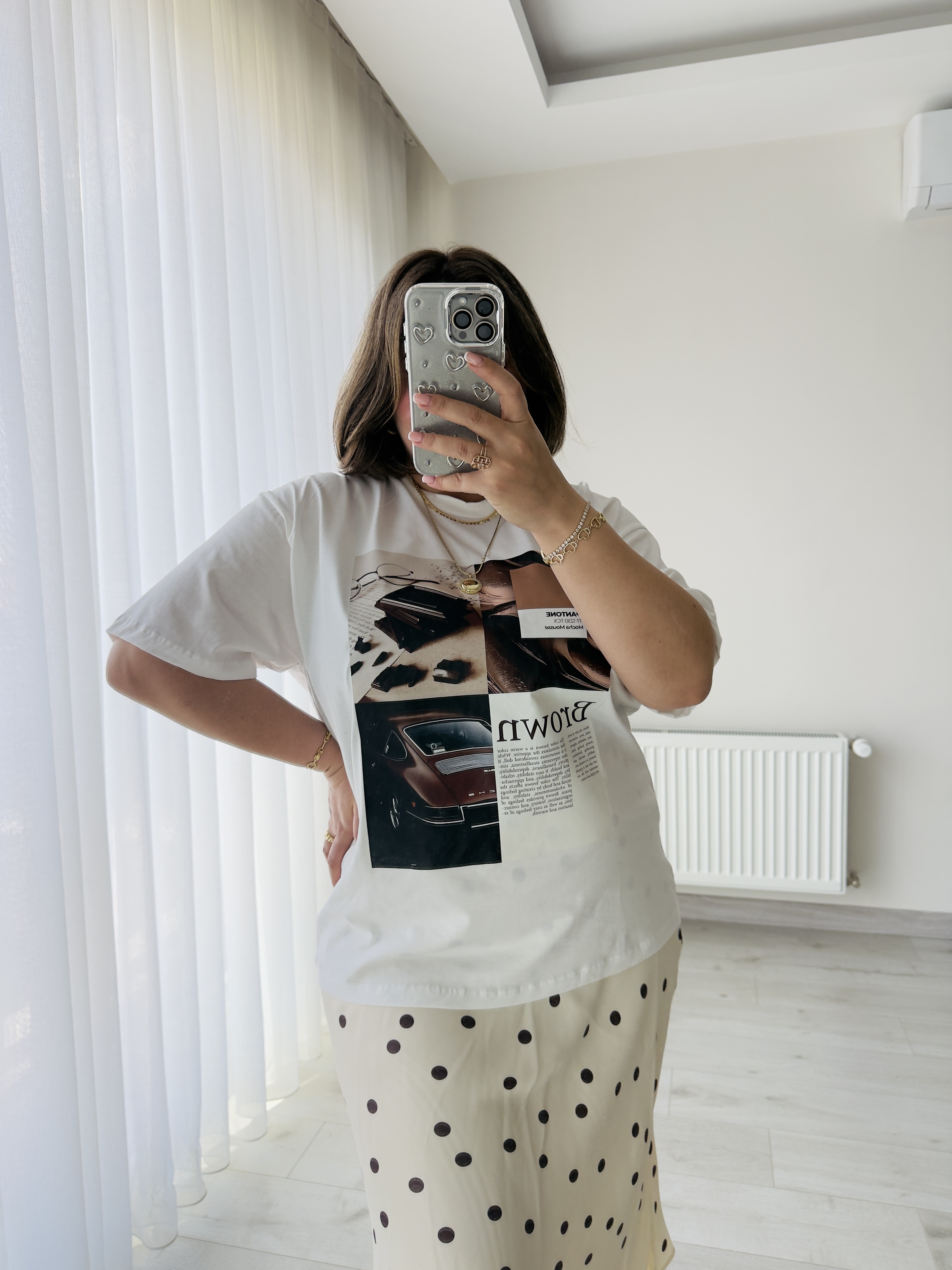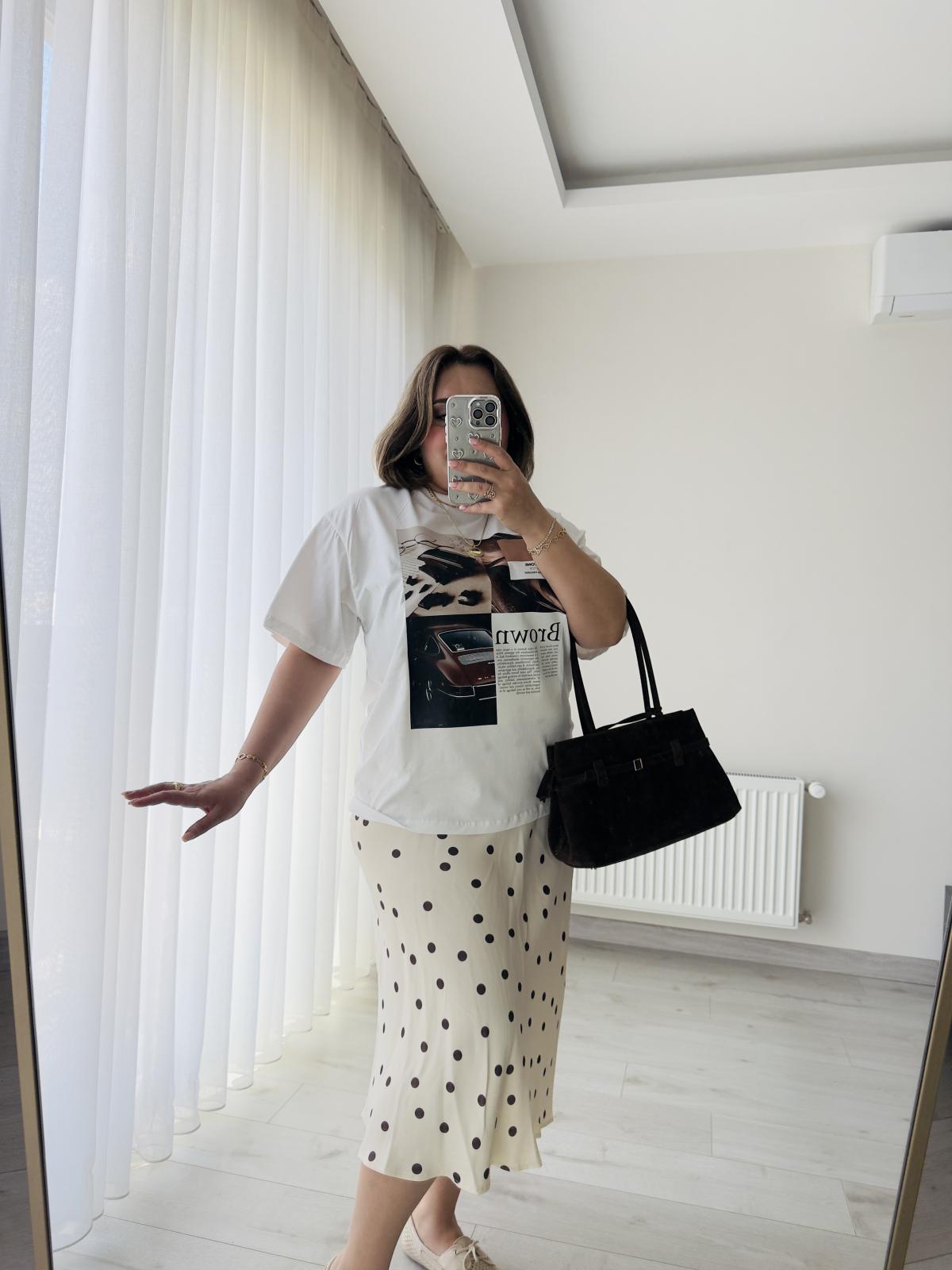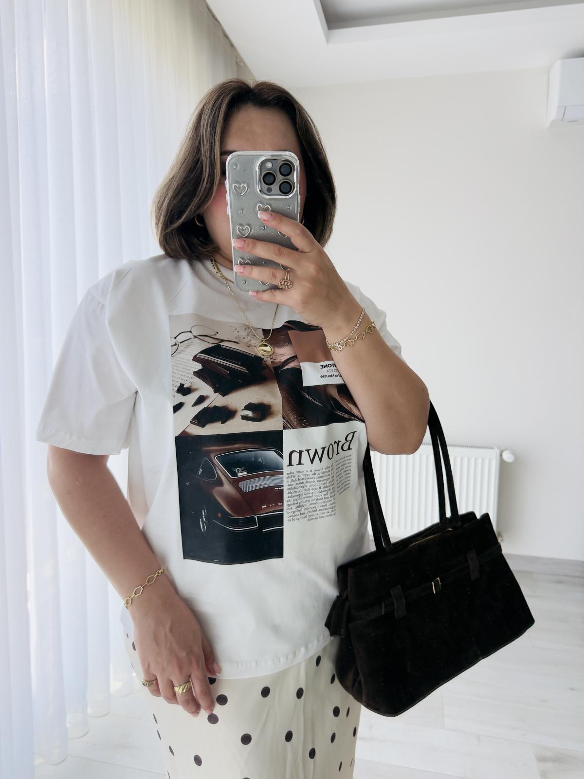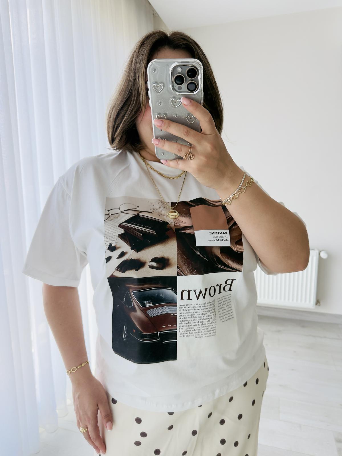 KAHVE DETAYLI ÖNÜ BASKILI OVERSİZE TSHİRT