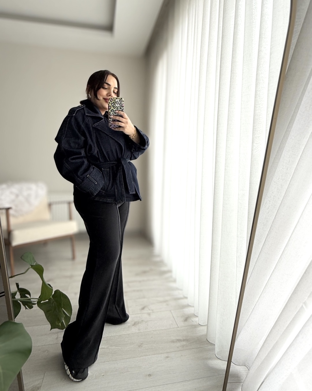 DENİM BELİ BAĞLAMALI CEPLİ TRENÇKOT